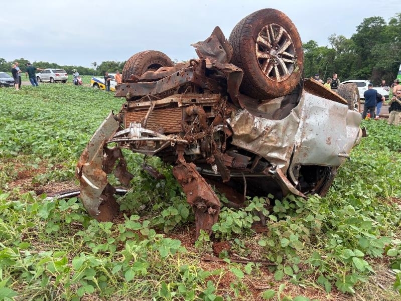 O capotamento envolveu uma Hilux, na curva do aterro, próximo ao Arroio Guaçu.