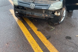 Carro colide em barranco na saída de Quatro Pontes e mulher fica ferida
