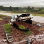 Caminhão cai em represa na BR-116 e deixa criança morta e pai desaparecido no Paraná