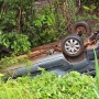 Van desce ribanceira e capota após acidente na ‘Serrinha de Curvado’