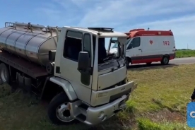 Jovem é ejetada de caminhão de leite em acidente na BR-163 em Cascavel