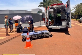 Colisão em rotatória termina com fuga de motociclista e vítima hospitalizada em Santa Helena
