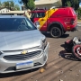 Jovem de 18 anos resulta com suspeita de fratura após grave acidente entre carro e moto no centro de Marechal Rondon