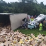 Colisão entre carro e caminhão deixa Gol destruído em Nova Santa Rosa