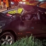 Carro é arremessado sobre portão de residência em acidente no centro de Palotina