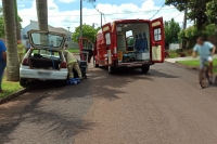 Jovem fica ferida em acidente envolvendo dois carros e moto esportiva, em Marechal Rondon