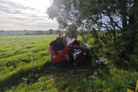 Carro sai da pista e atinge árvore na PR-495, em Marechal Cândido Rondon