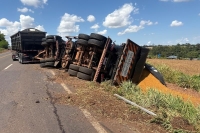 Carro carregado com cigarros capota em fuga da PRF em Guaíra
