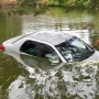 Carro carregado com agrotóxicos cai dentro de açude em fuga da PRF em Mercedes