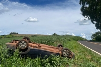 Capotamento de veículo é registrado no centro de Marechal Rondon