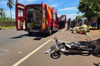 Acidente entre moto e caminhão deixa homem com ferimentos graves, em Marechal Rondon