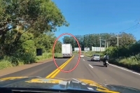 PRF flagra caminhoneiro realizando ultrapassagem perigosa em curva da BR 163 de Marechal Rondon