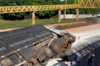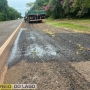 Carreta Mercedes-Benz tomba e espalha carga de farinha na BR-163 em Marechal Rondon