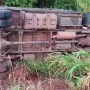Van de Mercedes capota após derrapar sobre pedras espalhadas na PR-182, entre Maripá e Toledo