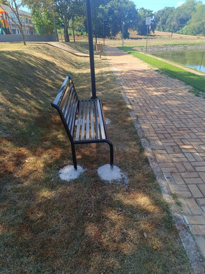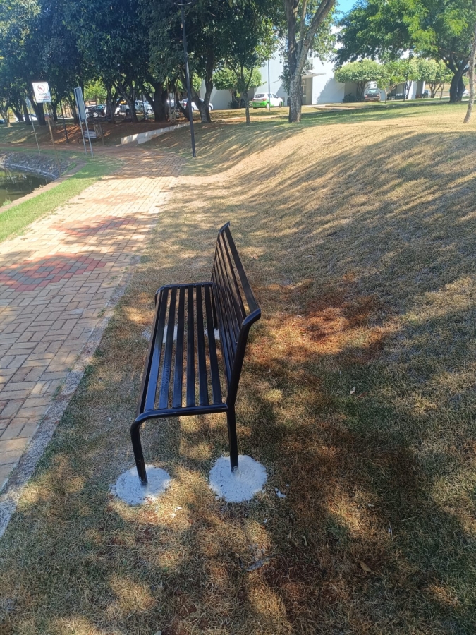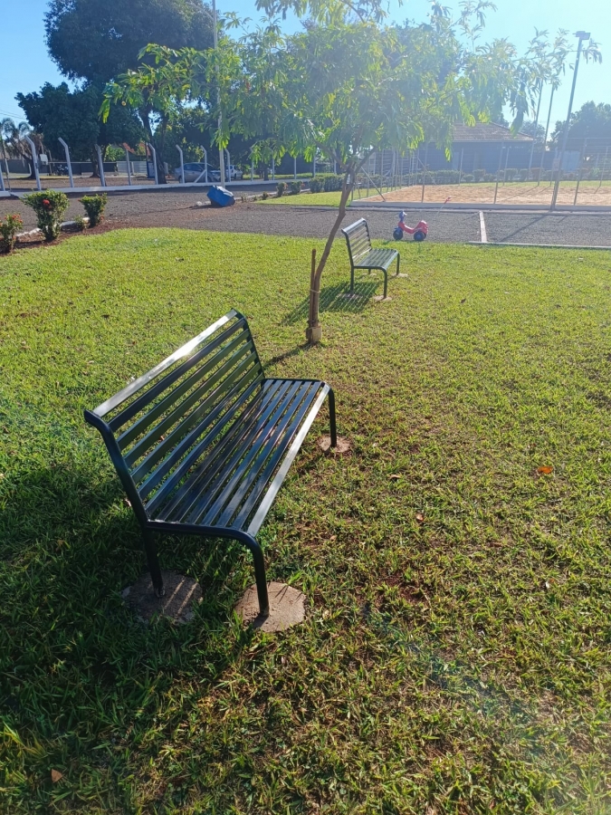 Parque de Lazer: foram instalados quatro novos bancos, proporcionando mais conforto aos visitantes que utilizam o espaço para atividades recreativas e esportivas.