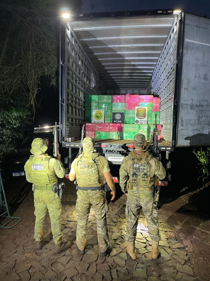 Nesta quarta-feira (09), a Polícia Militar do Paraná, por meio do Batalhão de Polícia de Fronteira (BPFRON), na vigência da Operação Protetor de Divisas e Fronteiras, numa ação integrada com a Polícia Federal (NEPOM) e Polícia Civil (COPE), realizava patrulhamento no interior da cidade de Itaipulândia, quando percebeu movimentações em meio a mata.