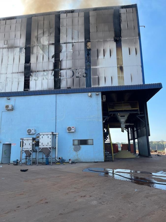 O trabalho em conjunto conseguiu evitar que o fogo atingisse as demais estruturas do local, como silos que ficam ao lago.