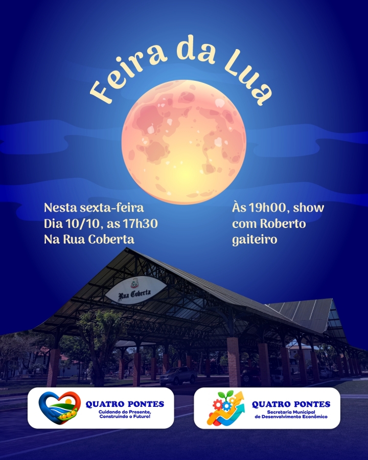 Nesta sexta-feira, 10 de outubro, Quatro Pontes será palco da 1ª edição da Feira da Lua, um evento especial que promete reunir música, gastronomia, lazer e integração comunitária.