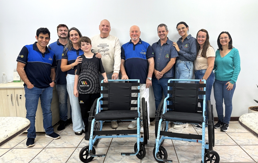 Em um gesto de solidariedade e compromisso social, o Rotary Club de Marechal Cândido Rondon, pertencente ao Distrito 4640, realizou na tarde desta quinta-feira (09) a entrega de duas cadeiras de rodas à Secretaria Municipal de Desenvolvimento Social de Quatro Pontes, por intermédio de Leide Raquel Meinerz. Os equipamentos serão repassados imediatamente à Secretaria Municipal de Saúde, para uso em atendimentos a pessoas com mobilidade reduzida.