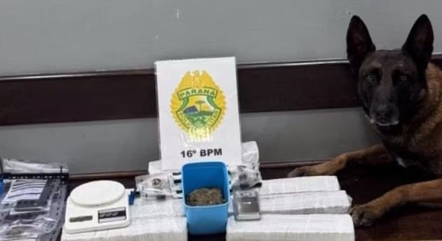 Cão farejador encontra drogas escondidas em lanchonete enquanto PM comprava lanche, no Paraná