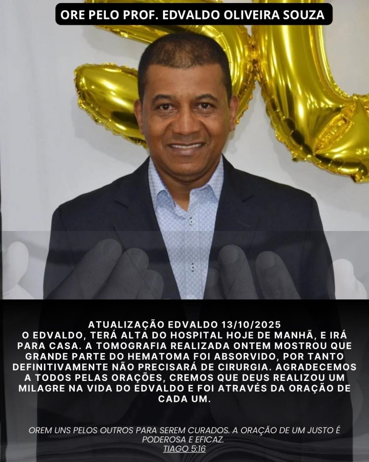A família agradece a todos pelas orações: “cremos que Deus realizou um milagre na vida do Edvaldo e foi através da oração de cada um”.
