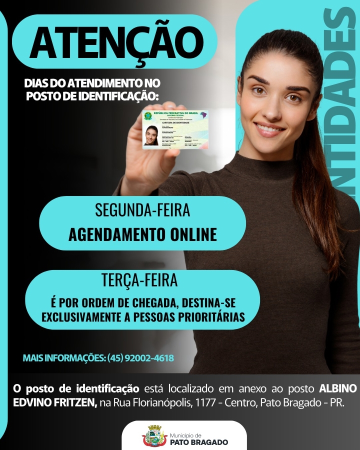 O Posto de Identificação de Pato Bragado traz uma importante atualização para a comunidade: a partir de agora, a emissão da Carteira de Identidade será realizada em novos dias da semana.