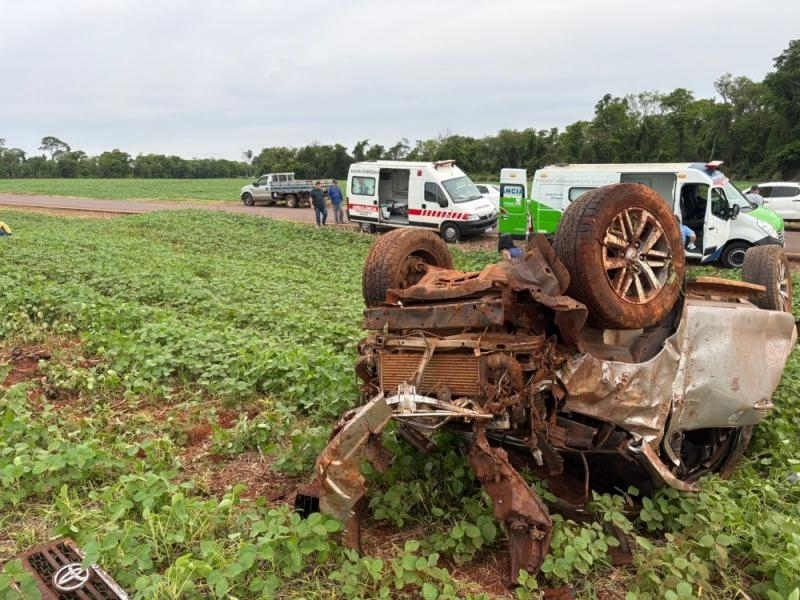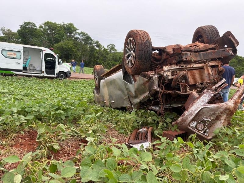 Conforme apurado no local, a caminhonete Toyota Hilux seguia pela estrada sentido ao distrito de Arroio Guaçu, quando na curva do aterro, capotou por diversas vezes.