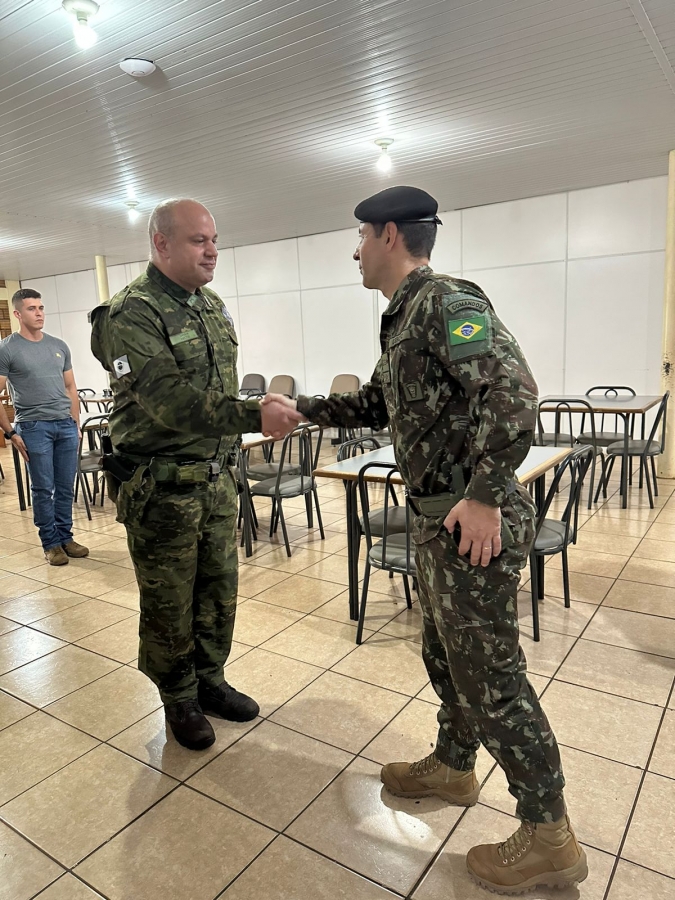 Na terça-feira (28), o Batalhão de Polícia de Fronteira (BPFRON) recebeu a visita institucional do Tenente-Coronel André Luís Miranda Peixoto, comandante do 33º Batalhão de Infantaria Mecanizado do Exército Brasileiro de Cascavel.