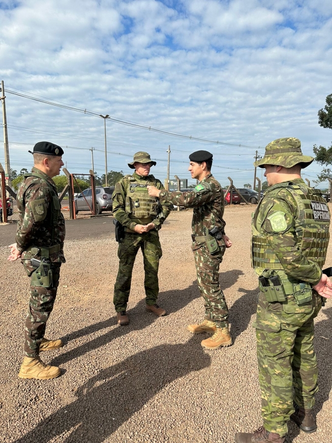 Durante o encontro, foram apresentadas as principais atividades operacionais e estratégicas desenvolvidas pelo BPFron na região de fronteira, reforçando o compromisso conjunto das instituições na proteção das divisas e no combate aos ilícitos transfronteiriços.