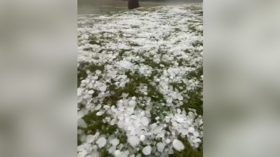 Durante o temporal, moradores de Entre Rios do Oeste registraram a queda de granizo que cobriu os gramados e ruas da cidade, deixando tudo branco por alguns minutos. As pedras de gelo se acumularam rapidamente, mudando completamente a paisagem.
