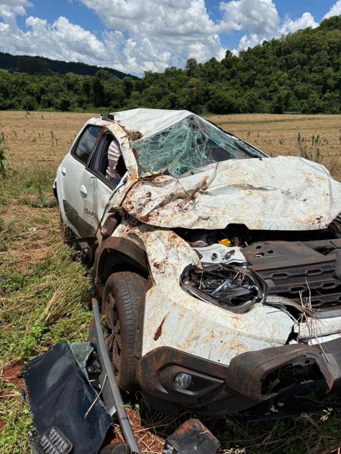 Veículo capota às margens da PR-471 entre Catanduvas e Três Barras do Paraná