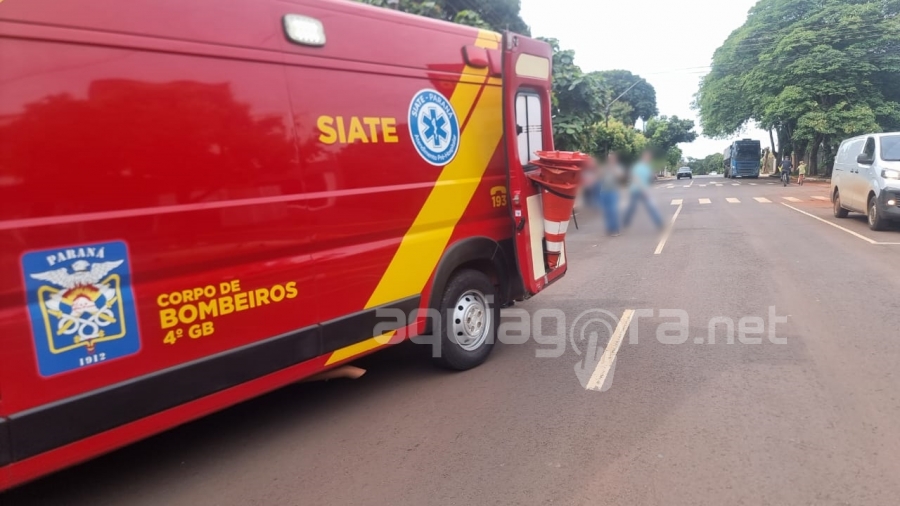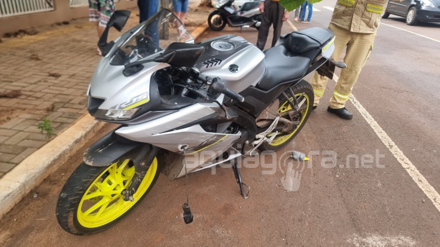 Um veículo Duster colidiu contra a motocicleta, que ficou desgovernada e atingiu um Fox que estava estacionado
