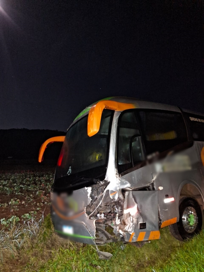 Caminhonete invade pista e bate em ônibus com 38 estudantes na PR-180, em Cascavel