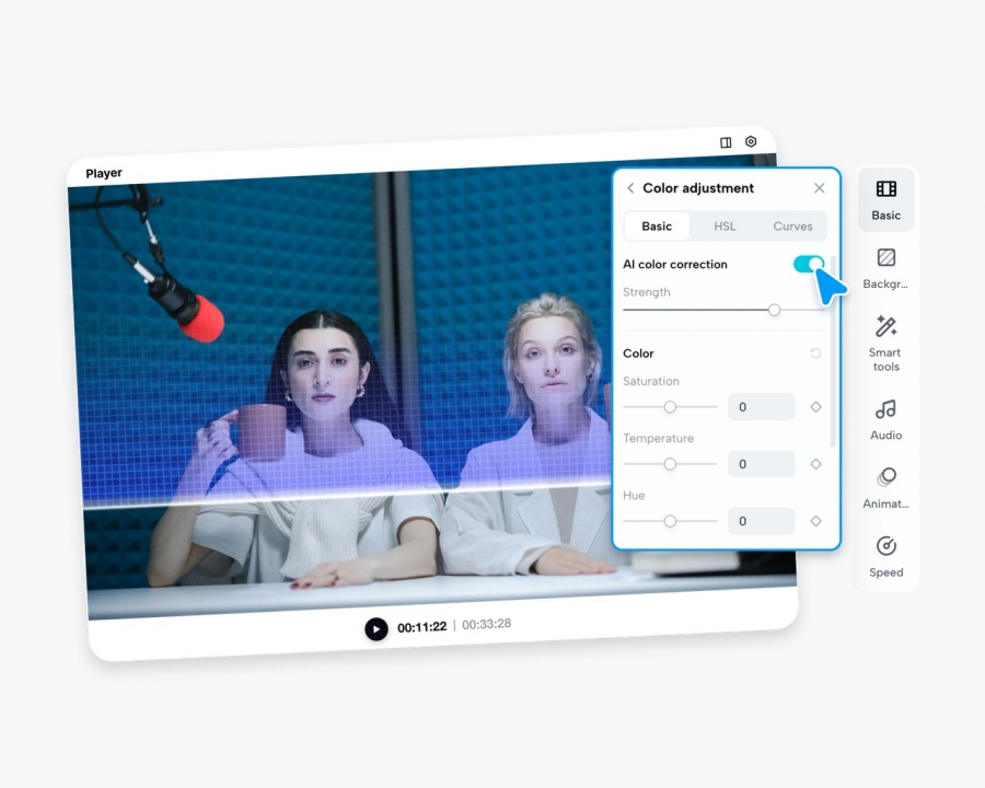 Quando o rascunho carregar, personalize livremente. Ajuste legendas manualmente, adicione novos textos, altere tamanho, cor ou alinhamento, e aplique filtros ou efeitos. Música de fundo e remoção de fundo ajudam a polir seu Reel.