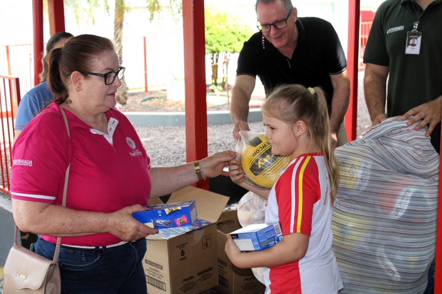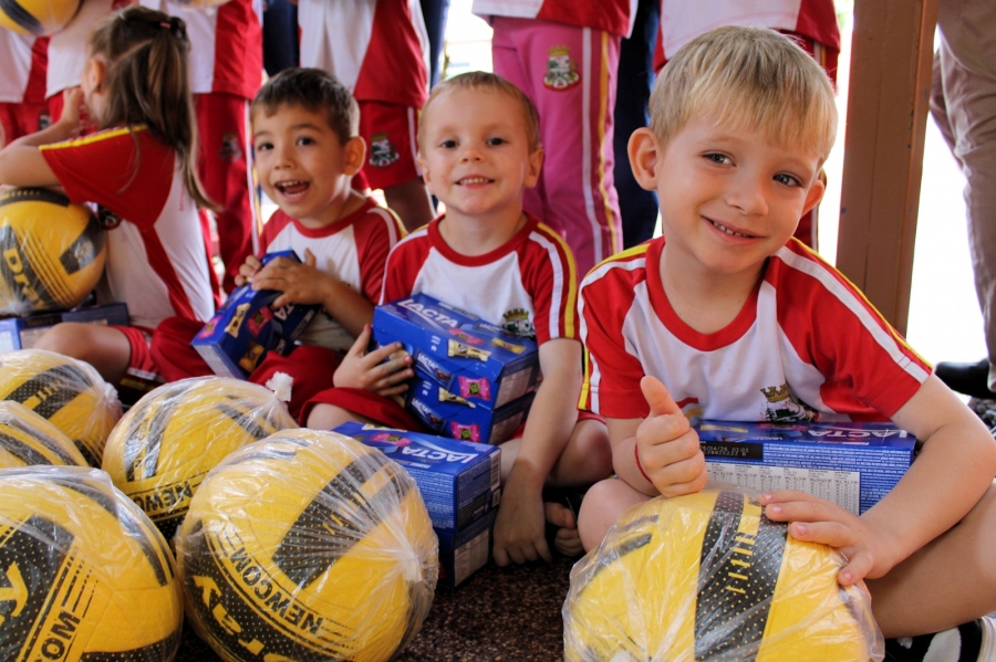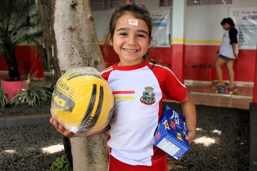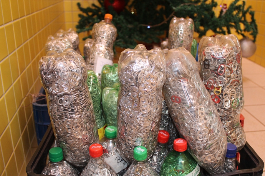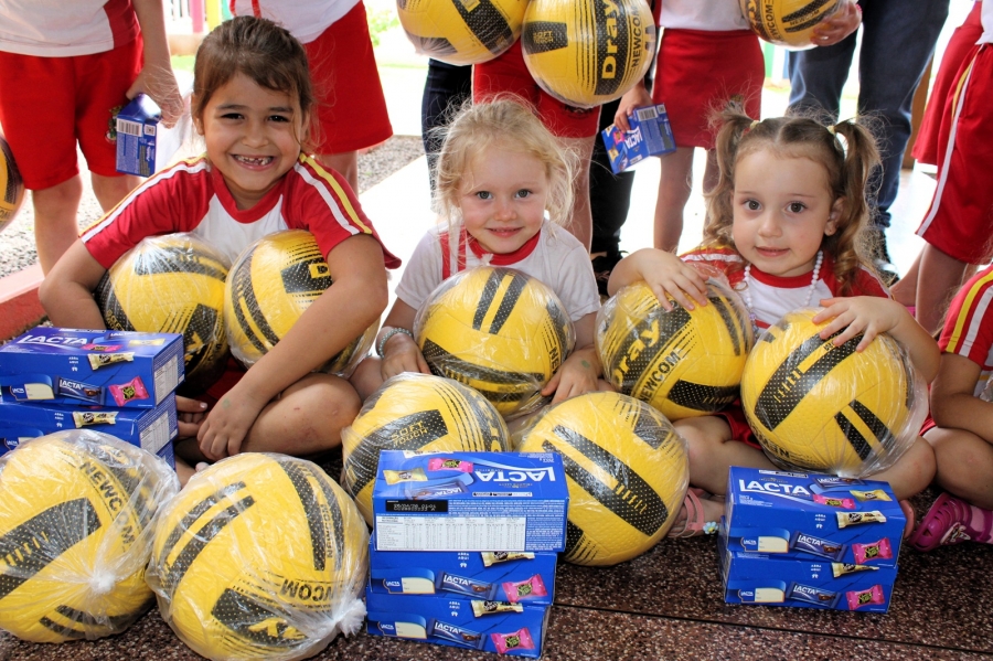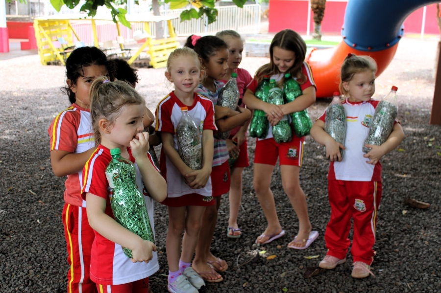Durante todo o ano, os alunos das escolas municipais juntaram lacres e levaram para as salas de aula. Para estimular a participação, cada criança que entregou uma garrafa pet cheia recebeu uma bola e uma caixa de chocolates.
