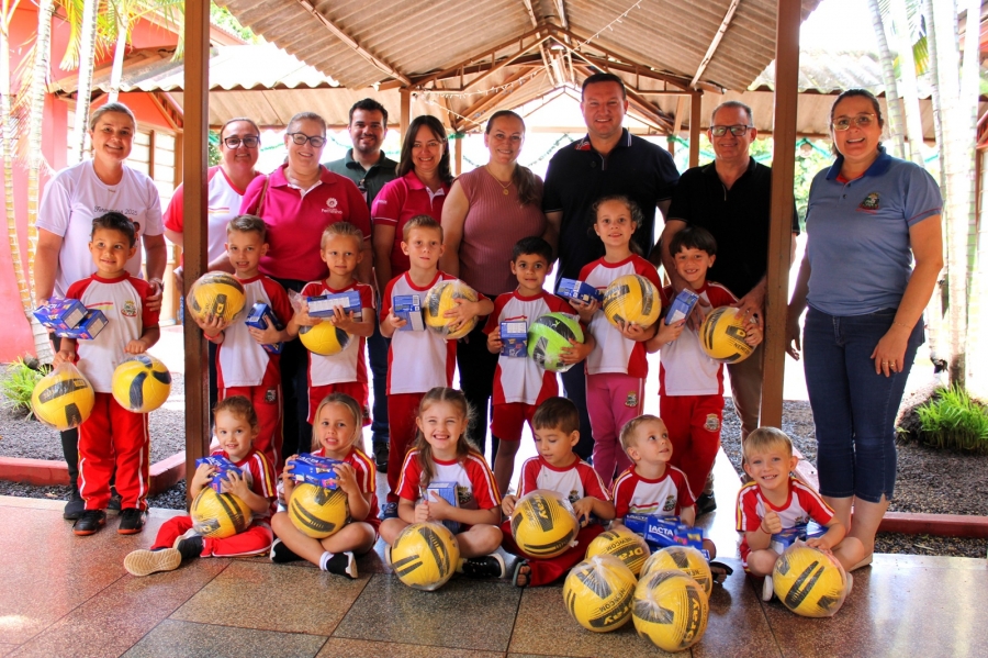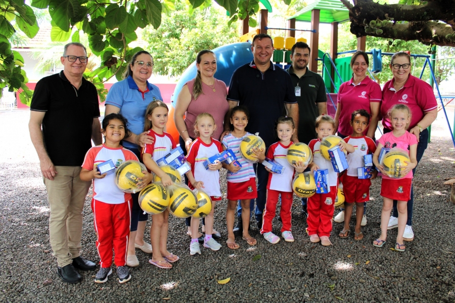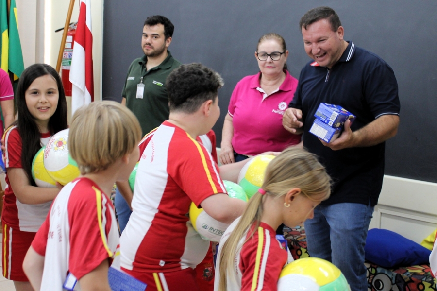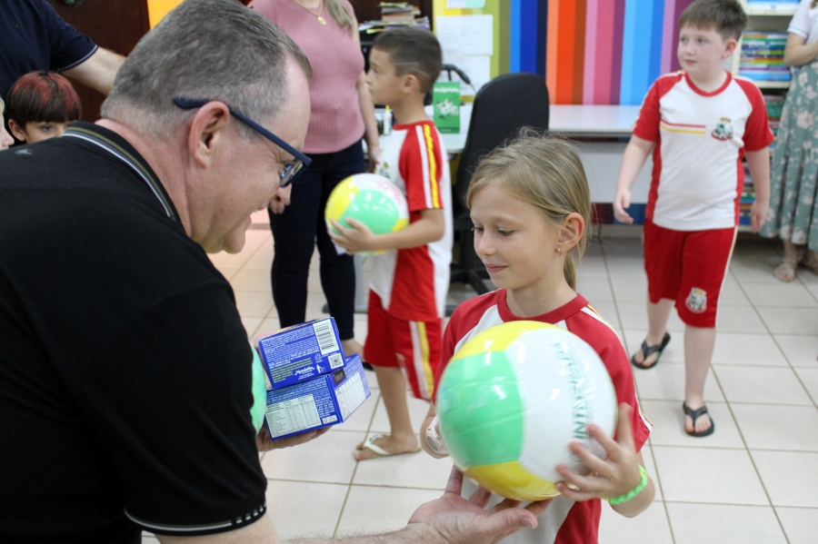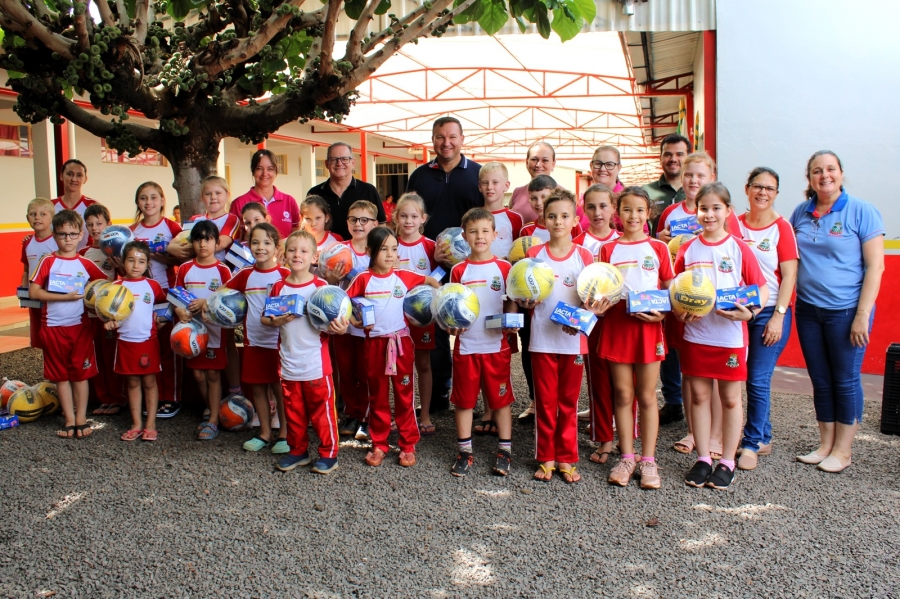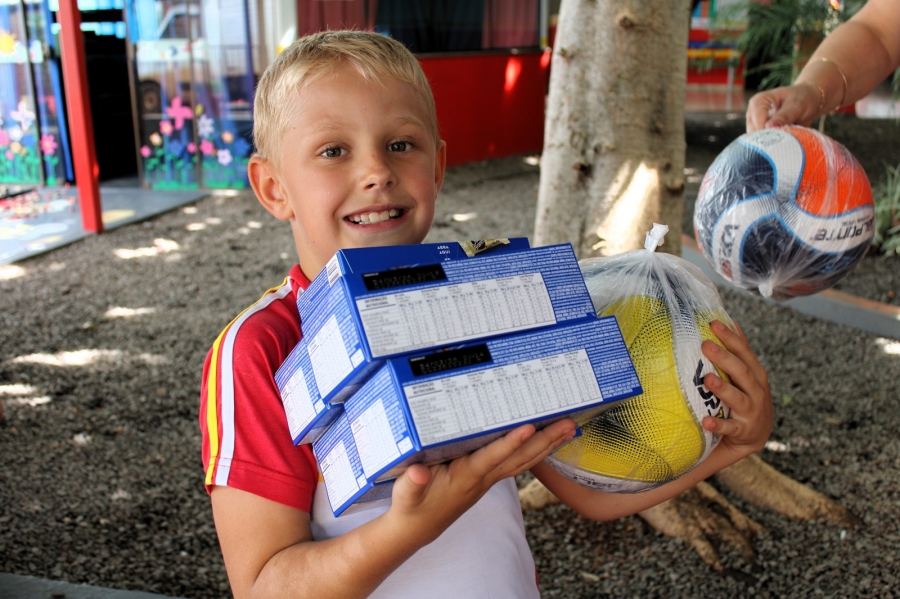 Durante todo o ano, os alunos das escolas municipais juntaram lacres e levaram para as salas de aula. Para estimular a participação, cada criança que entregou uma garrafa pet cheia recebeu uma bola e uma caixa de chocolates.