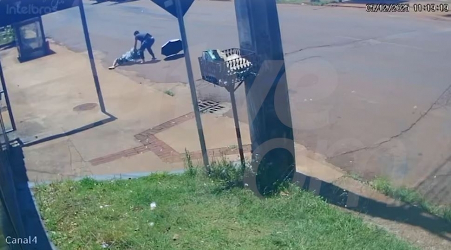 Vídeo de uma câmera de monitoramento registrou o assalto contra uma idosa de 79 anos em Cascavel.