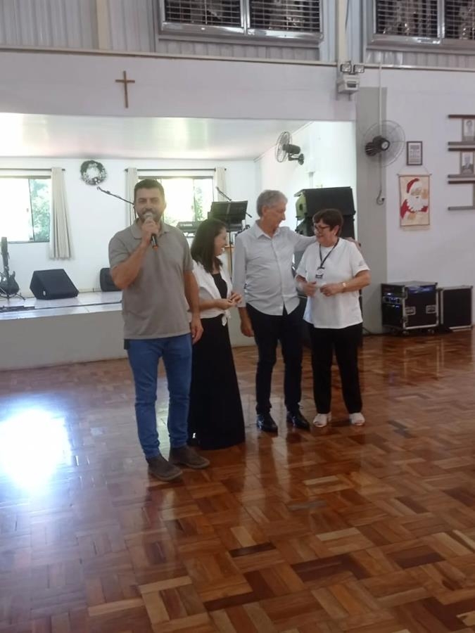 Servidores da Secretaria de Assistência Social foram convidados a participar das programações, reforçando a proximidade e o acompanhamento das atividades desenvolvidas ao longo do ano. A secretária de Assistência Social e primeira-dama, Andria Backes, acompanhada pelo prefeito Adriano Backes e por servidores da pasta, esteve presente nas confraternizações dos seguintes grupos:
