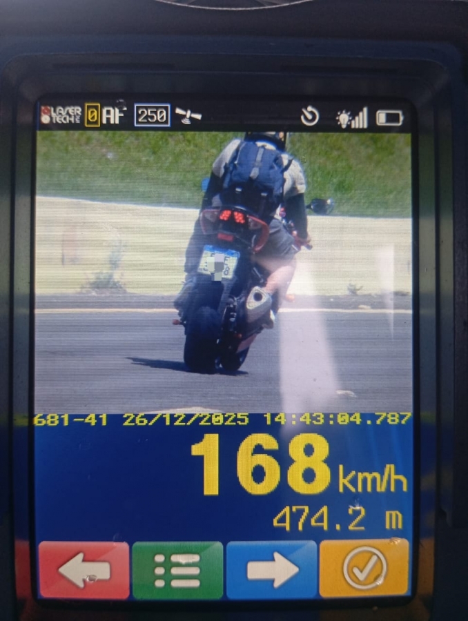 Entre os casos mais graves, um motociclista foi flagrado a 168 km/h na PR-467, no trecho do perímetro urbano entre o viaduto da Rua Jacarezinho e o Trevo Cataratas — 68% acima do limite máximo de 100 km/h. Em outro flagrante, um veículo foi registrado a 149 km/h, 49% acima da velocidade permitida para o local.