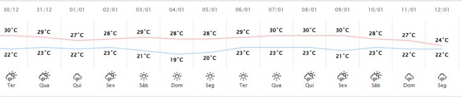 Já entre terça e quarta-feira o ambiente atmosférico fica mais elevado para o risco de temporais, mas as temperaturas não ficam tão elevadas, mas ficam mais perto das médias climatológicas.