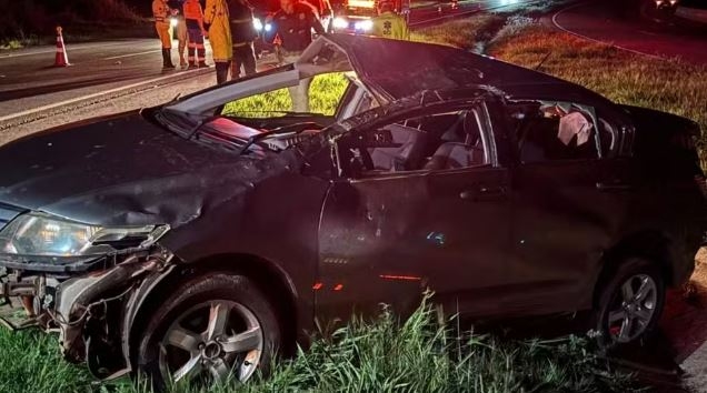 O acidente aconteceu por volta das 19h40, no km 143 da rodovia. O veículo seguia no sentido Capitão Leônidas Marques/Lindoeste quando saiu da pista e capotou, segundo informações da Polícia Rodoviária Federal (PRF).