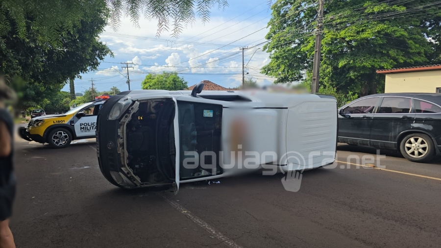 Capotamento de veículo é registrado no centro de Marechal Rondon