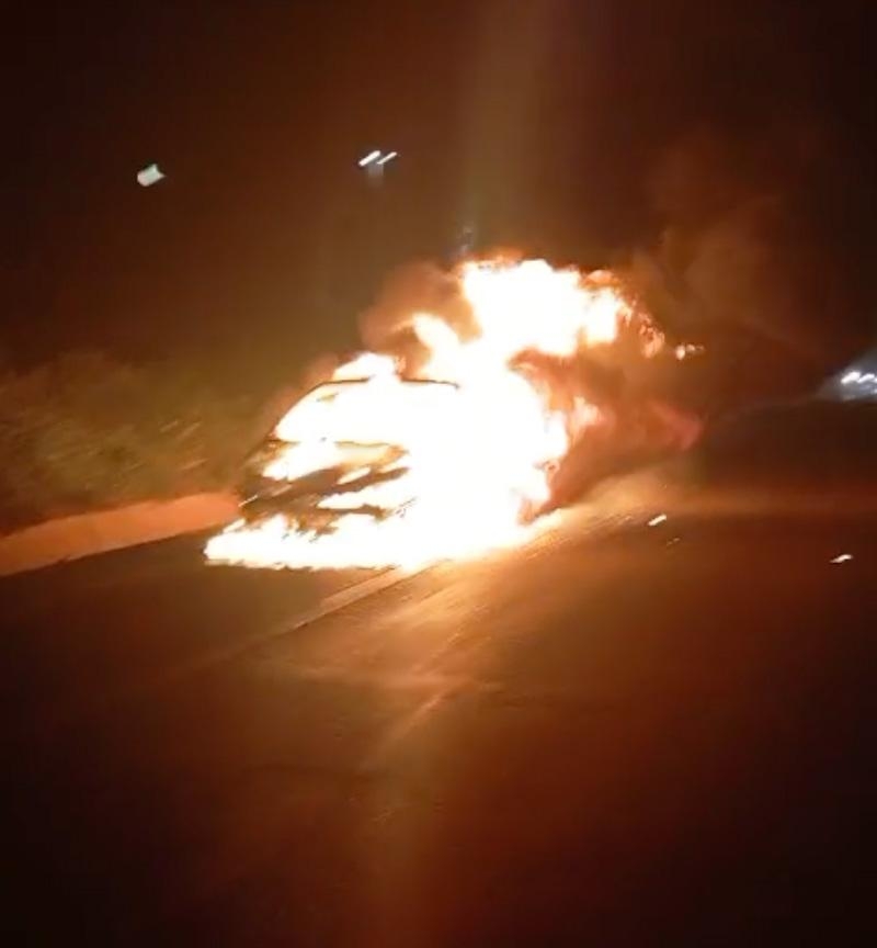 Carro é destruído por incêndio na BR-163 entre Toledo e Marechal Cândido Rondon