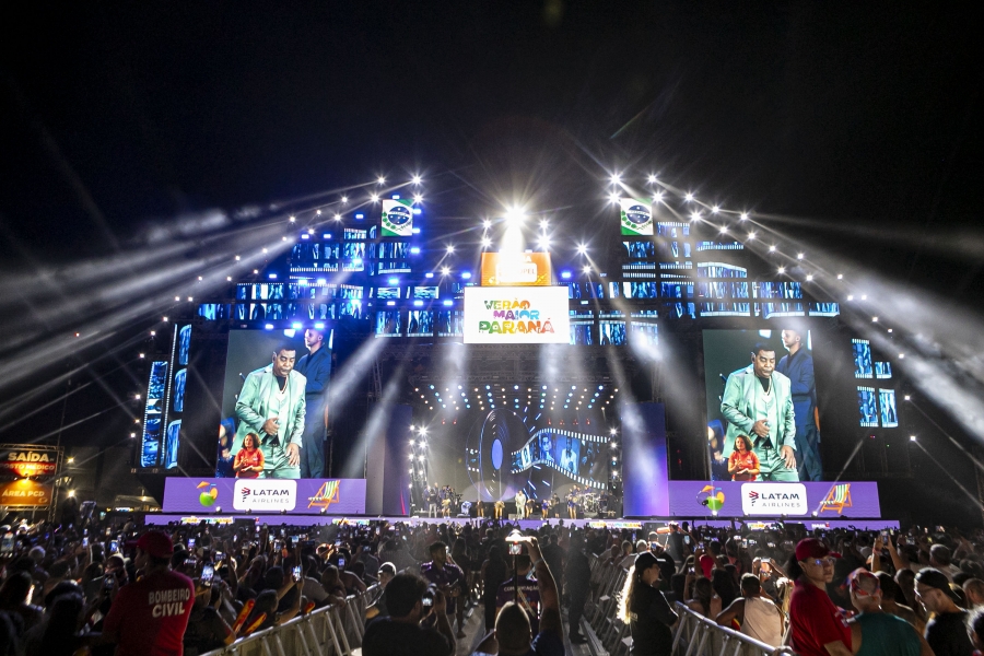 A noite desta sexta-feira (23) foi marcada por um coral do início ao fim junto de um dos grupos musicais de maior sucesso da música brasileira. A banda Raça Negra, veterana no Verão Maior Paraná, levou para as areias de Matinhos 118 mil pessoas, superando a marca de 2024, quando 110 mil acompanharam a apresentação no palco de Caiobá. Neste sábado (24) eles repetem a dose em Pontal do Paraná, ao lado de Roberta Miranda.