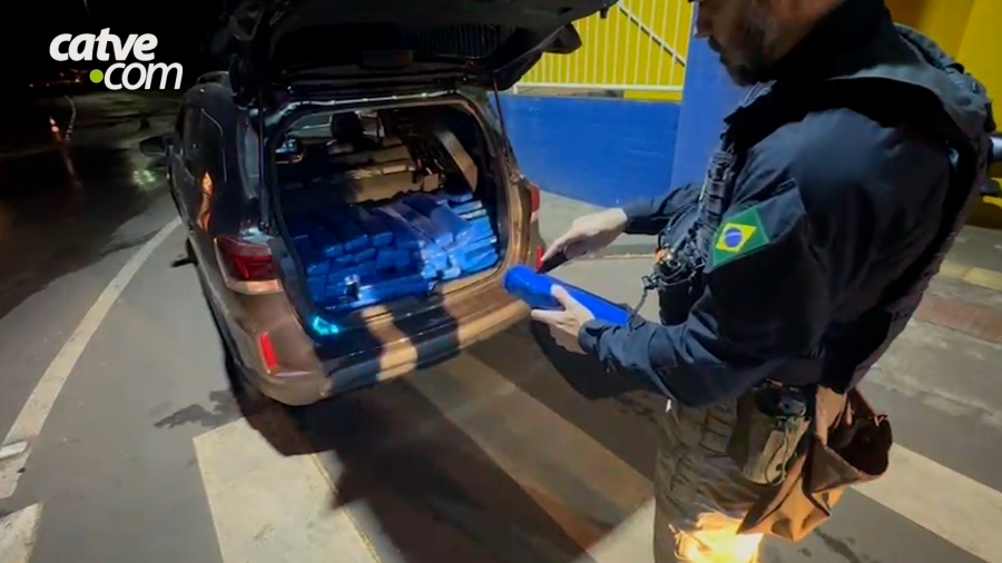 Por volta das 23h09, policiais rodoviários federais abordaram um carro que trafegava pela rodovia. Durante a vistoria no interior do veículo e no porta-malas, encontraram vários tabletes da droga.