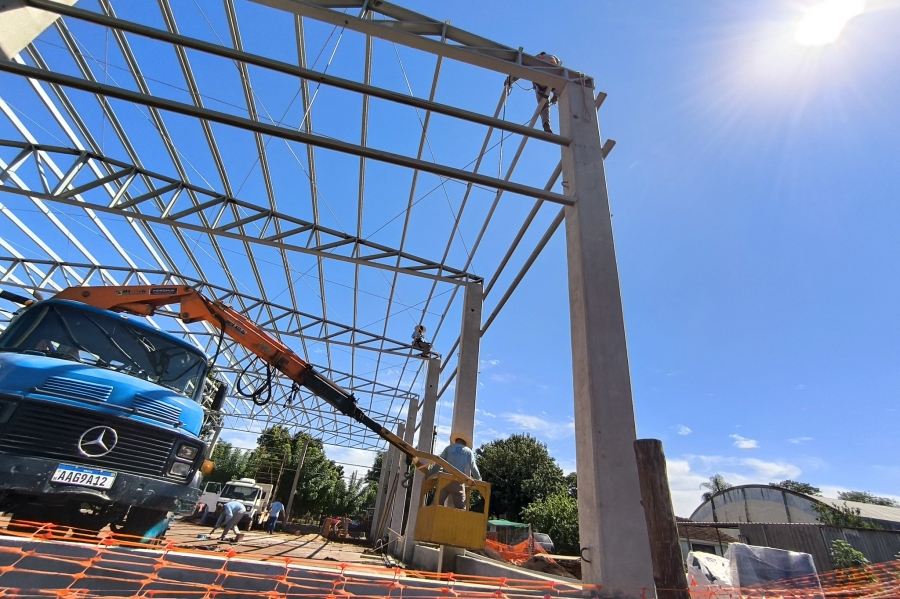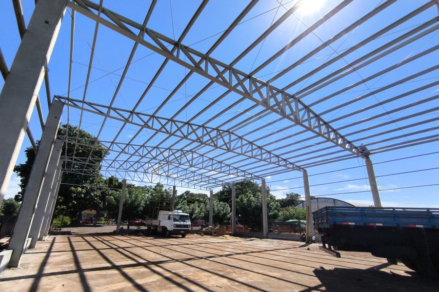 Mais uma etapa da obra na quadra esportiva da Escola Rural Municipal Almirante Barroso, localizada em Vila Curvado, interior de Marechal Cândido Rondon, teve início nesta semana. Nesta fase, está sendo executada a colocação do telhado. Após isso, deverá ser feita a reforma do piso da quadra.