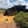 Conforme apurado no local, uma carreta bitrem seguia do MS ao Rio Grande do Sul, quando o reboque tombou na terceira pista na região da Sanga Mate, já próximo à cidade de Mercedes.