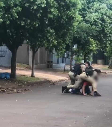 Imagens gravadas por populares mostram a resistência de um homem ao ser preso por descumprir medida protetiva; internautas elogiam a técnica e o profissionalismo da equipe