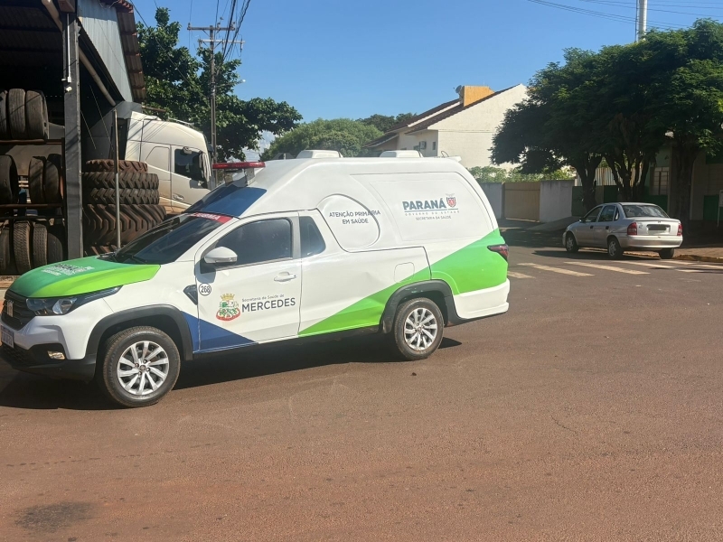 Uma ambulância do município de Mercedes se envolveu em um acidente na tarde deste sábado (28), no centro da cidade.