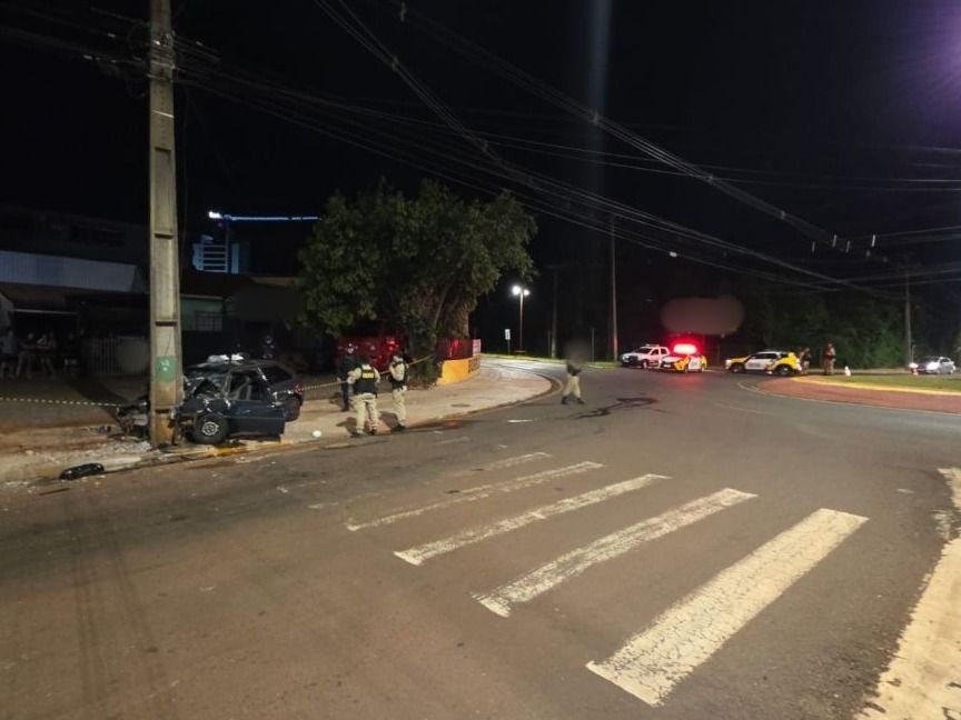 Jovem morre e outro fica gravemente ferido após carro colidir contra poste em Toledo